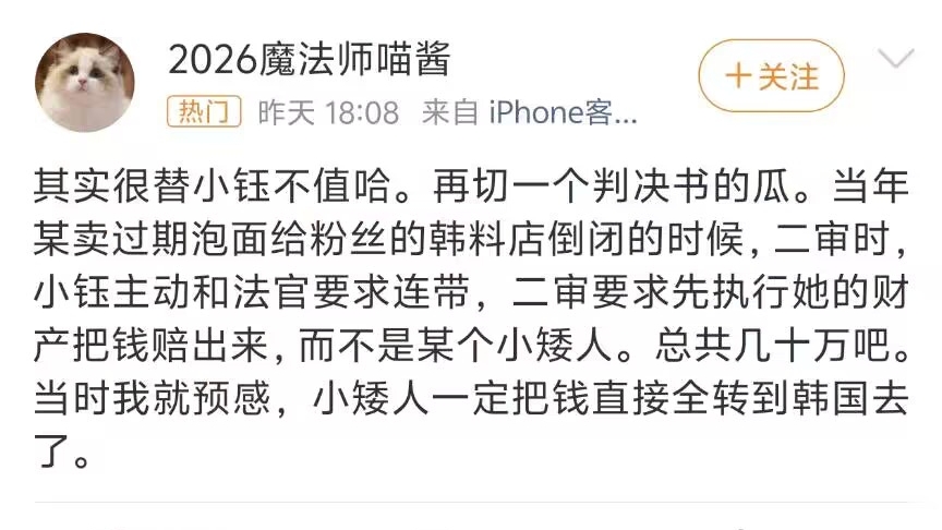 This former analyst's爆料 is indeed true, as the court judgment document can be found. The defendant listed is only Chu某某 (Xiaoyu's original name Chu Yu), not Song Yijin (Rookie). The two opened the shop together, but when problems arose, Rookie took no responsibility at all, leaving Xiaoyu to handle the lawsuit entirely. This is really outrageous. If one insists that Rookie had to compete and had no time to deal with these issues, letting Xiaoyu handle it might seem plausible.