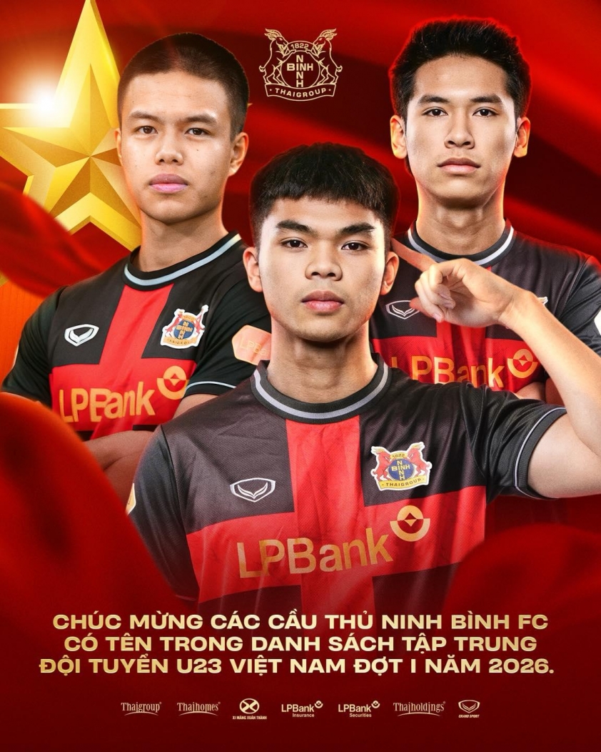 On the official website, Ninh Bình Club announced that the trio of players Tran Thanh Trung, Le Van Thuận, and Nguyen Le Phát are among those named in the team's list. U23 Vietnam for the first training camp in 2026.