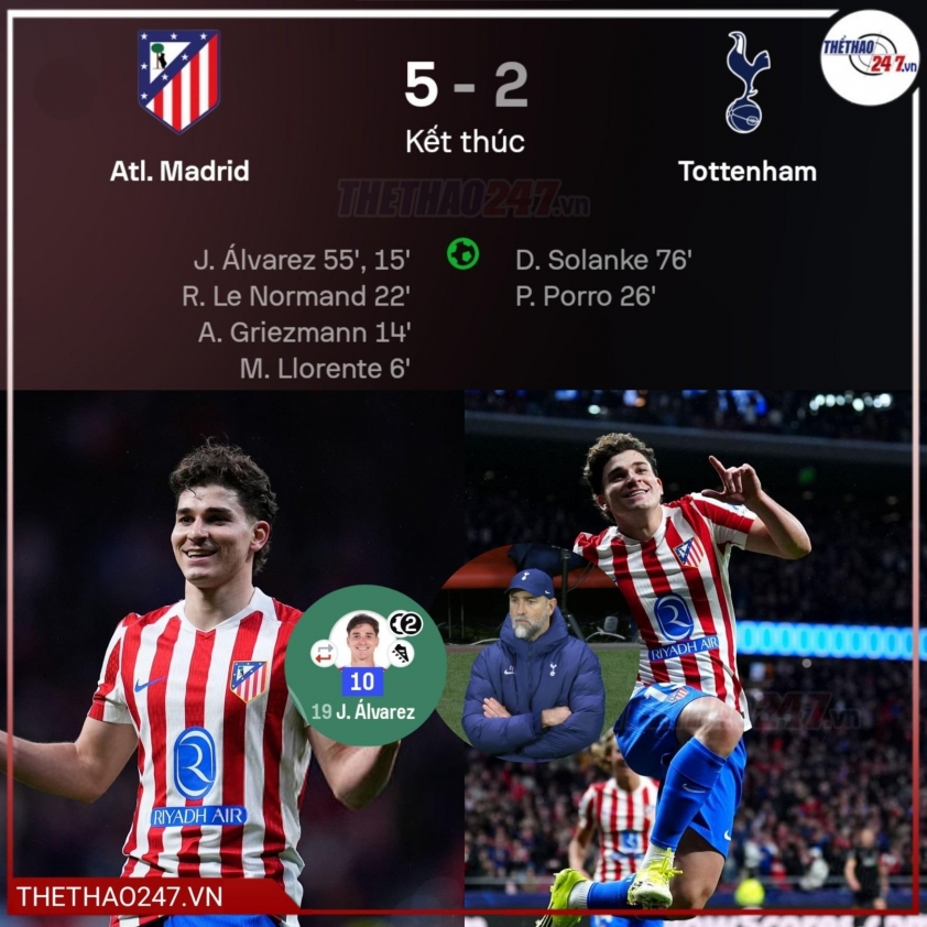 Although Tottenham later scored two goals to reduce the deficit, Atletico still easily secured a 5-2 victory. Tudor admitted his team was overwhelmed from the start of the match: “We started the match terribly. The team is in a fragile state, and that made everything difficult,” he said.